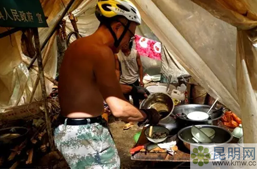 這是九天來第一次吃到米飯,雖然只有一個菜,還是工地上的剩飯, 仍然特別香。