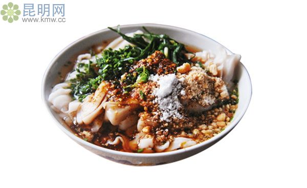 迤薩卷粉,是用紅米和白米勾兌加工成米漿后,人工蒸煮而成,色澤白里透紅,形成了迤薩卷粉的獨(dú)特性。很講究佐料,其中油辣、香芝麻、姜、蒜等必不可少。