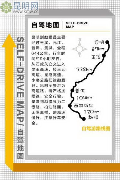 過(guò)路費(fèi)共計(jì)182元,到景洪為高速路,嚴(yán)格按限速,注意車速,安全行駛。景洪到勐臘為二級(jí)路,柏油路面,路面不錯(cuò),但無(wú)隔離欄,駕駛員需減速慢行。