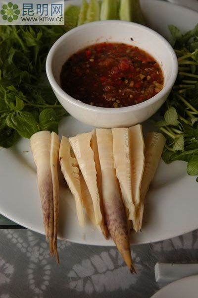 據(jù)調(diào)查資料顯示,西雙版納共有100多種可食用的竹筍。竹筍的做法很多,有炒、煮、烤、生吃等。傣族還用一種特殊的方法制成酸筍,這樣可以四季食用。用這種酸筍煮雞、魚或排骨,味道獨(dú)特,鮮美無(wú)比。