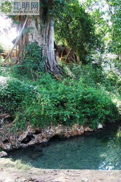 樹洞溫泉位于芒市遮放鎮芒棒村,距芒市市區約55公里。村里有一棵10余米高的大榕樹,榕樹下有幾個一米見方的巖洞,巖洞內外泉水的水溫約為50攝氏度。洞中足可以容下七八個成年人泡澡,完全可以開“小型溫泉會議”。無門票