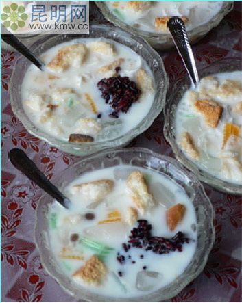 紫米泡魯達,到芒市不得不吃的甜品。牛奶、西米、紫米糯米飯以及煉乳和椰絲,配合成香甜清新的味道。