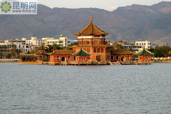 因坐落于舊城南門外而得名。原為一片沼澤地,明代將其開掘成湖。在湖中堆積成三座土山,以神話中的蓬 萊、方丈、瀛洲三仙山命名。從前,當地的文人學士常喜歡到這里吟詩作賦,發奮苦讀,故又稱 “學海”。云南過橋米線的故事起源于這里。