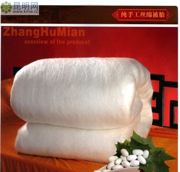 蒙自縣草壩鎮蠶絲棉被以優質100%純天然桑蠶絲及上等絲綢品料為原料,經手工精制而成。具有天然無害,輕軟舒適,吸濕透氣,冬暖夏涼的特點,更有與人體皮膚親和性好的保健功能,是具有天然保健功能的優良臥具。