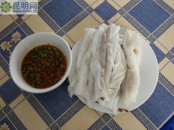 河口獨有的傳統米制食品,制作精細、風味獨特,用淀粉制成卷筒的衣皮包,包入粉絲、豆芽、精肉末、雞蛋、花椒粉、食鹽、味精拌均勻,將包衣皮片在釋清的醬油水過一下回軟,將適量的粉絲肉餡放置卷筒皮中間包成條形,用溫火油炸至金黃色即可。切成2—3段,用一片生菜葉將芫荽、薄荷,一小節春卷包成團,蘸辣子蒜末酸醋蘸水食用,味道香脆可口,油而不膩。