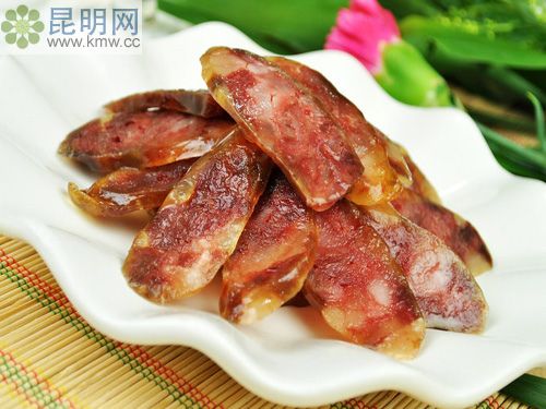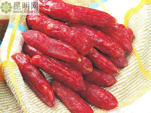 越南人喜歡的美食。其做法是用豬瘦肉末和各種香萊,灌人豬小腸中,然后煮熟。吃前切成節,蘸上各種調料。