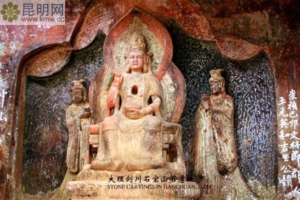 距劍川縣城(西南)約25公里,有唐朝南詔國(guó)時(shí)期的石窟群,有威嚴(yán)的南詔王室造像、佛教天王造像和神秘的白族“阿央白”崇拜等遺跡,石寶山石窟是劍川石雕藝術(shù)的精華。50元/人,0872-4787029。