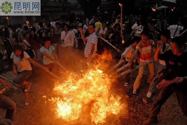 農(nóng)歷6月25日,白族狂歡節(jié),每個白族寨子都要樹大火把,嫁出去的女兒要回娘家過節(jié),青年男女晚上田間地頭耍火把。