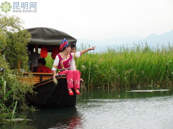草海型天然湖泊,候鳥天堂,生物多樣性豐富,水域寬闊,周邊良田萬頃,村寨點綴,每年7月荷花節(jié)游人如織,白族調子不絕于耳。無門票。