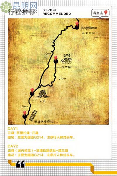云縣(城內景觀)-19km-滇緬鐵路遺址-44km-茂蘭鎮
