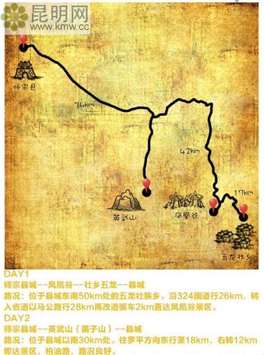師宗為曲靖市轄縣歷史悠久、民俗風情濃厚,境內居住著壯族、彝族、苗族、瑤族、回族5種少數民族,素有“十里不同族,五里不同俗”之說。不論是壯苗小曲吊角樓,還是彩色花飯竹筒酒,都會讓游人留連忘返。旅游資源有國家4A級風景區神秘的鳳凰谷,亦是我國第一個以生命文化為主題的自然風景區,南丹山天然大佛、師宗英武山風景區馬纓花杜鵑群落是世界上迄今為止發現的胸徑最大、最集中、最古老和最壯麗的馬纓花群落,多姿的英武山百花斗妍,萬頃杜鵑艷驚天下。