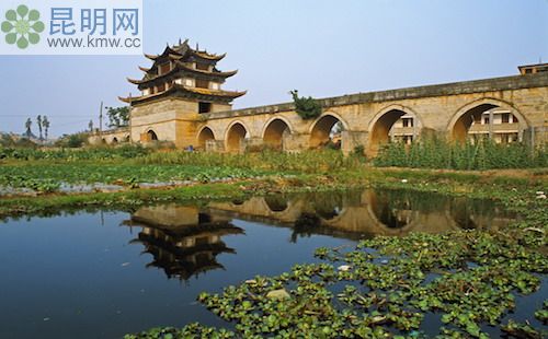 雙龍橋,云南省著名古跡之一,已列入中國造橋史冊。清乾隆年間先建三孔,道光年間又建十四孔與之相連,因此俗稱“十七孔橋”。它造型奇巧,是我國現存的優秀古橋之一,屬省級重點文物保護景點。2006年5月25日,作為清代古建筑,被國務院批準列入第六批全國重點文物保護單位名單。
