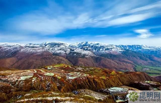 火紅的泥土、變色的植物,各異的形狀、優美的線條,襯以藍天、白云和那變幻莫測的光線,東川紅土地就是一副絢爛的變色油畫!