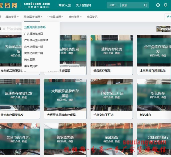 當然,如果想足不出戶的就完成以上這些工作,也是有辦法的。 專業的人做專業的事,比如搜檔網,就是一個搜集和整理了廣州杭州深圳遼寧常熟數以萬家的服裝批發檔口老板微信的網站。