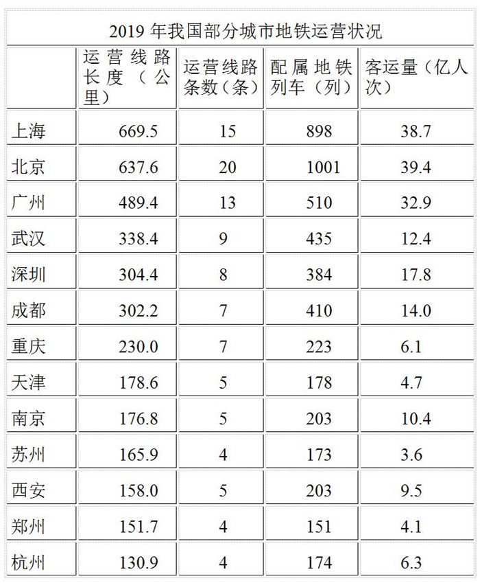 2019年末,我國城軌交通配屬地鐵列車6178列,全年實現地鐵客運量227.76億人次。